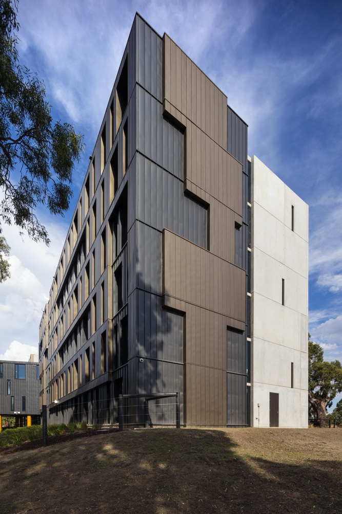 項目坐落于墨爾本本多拉地區(qū),是RMIT大學(xué)的學(xué)生公寓。RMA事務(wù)所受RMIT所托設(shè)計學(xué)生公寓,其設(shè)計將為在校生提供最好的居住環(huán)境。RMA事務(wù)所與RMIT以及公寓的經(jīng)營者Unilodge緊密合作,保證居住在公寓里的人可以享受到公共空間帶來的各種便利,并在核心區(qū)設(shè)計充足的學(xué)生活動功能。該建筑的設(shè)計是簡單的偏斜十字架,被澳大利亞古老的植物環(huán)繞。這些樹木包括以Wurundjeri氏族祖先命名的Keelbundoora Scarred Trees。