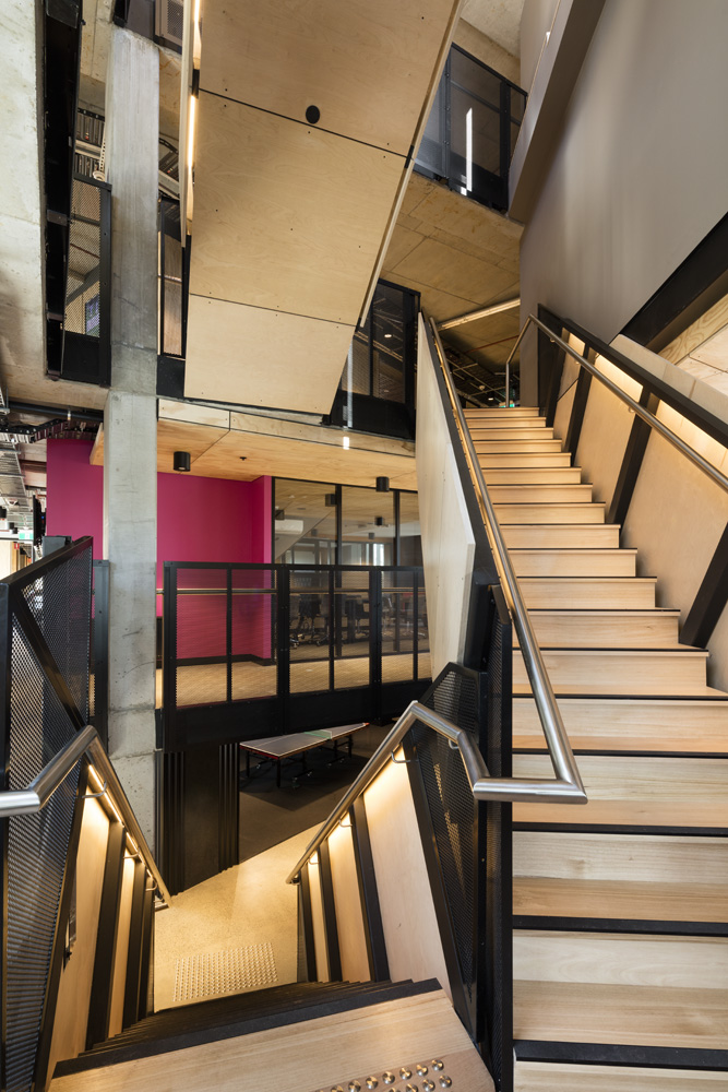 BWSA提供從低成本的公共空間到單人間再到適合夫妻居住的大型公寓。建筑的整個南翼由Quad公寓組成,其中每間包括4間臥室和兩個配套浴室。東翼的一層到三層由18平方米的SOU組成,其上層分別提供27平米和36平米的大型公寓以滿足研究生公寓市場。372間臥室傾斜布置,避免陽光直射,使居住者充分利用并享受窗邊空間。其折疊的鋅和青銅立面使建筑享受充分光照和自然的通風(fēng)標準使居住者享受最好生活空間。在建造傳統(tǒng)上,其輕質(zhì)的外表面是唯一的模塊化部件。公寓的網(wǎng)狀設(shè)計形態(tài)允許走廊側(cè)面的通風(fēng)管都可以通向屋頂。每個走廊盡頭的熱氣管道在東西走廊的內(nèi)側(cè),通過啟動窗戶吸引外面的空氣。此外,南翼通過打開窗戶采取自然通風(fēng)。