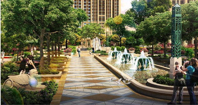 在設(shè)計(jì)中考慮景觀的空間層次變化,在住宅區(qū)中心打造大氣規(guī)整的中心景觀,住宅間創(chuàng)造豐富多變的組團(tuán)景觀。在大空間處綠化整體規(guī)劃,打造優(yōu)美的景觀社區(qū)。